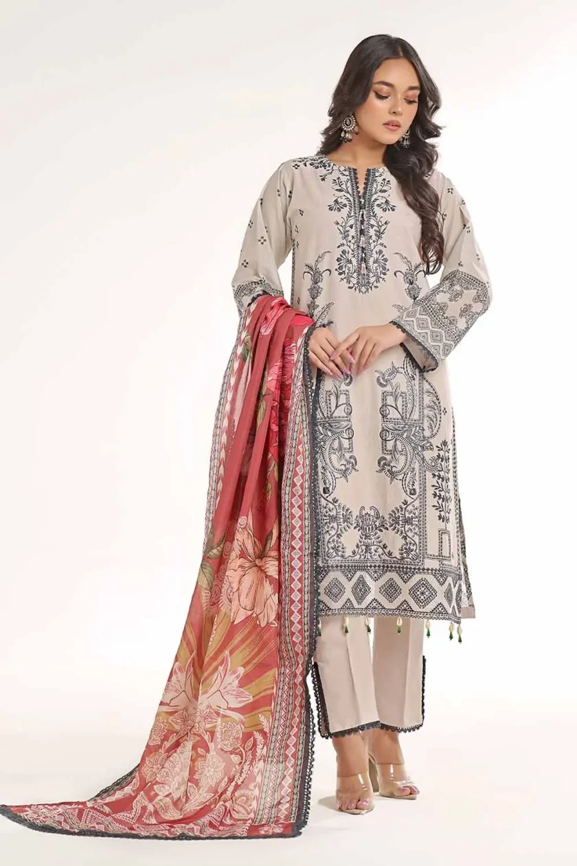 Gul Ahmed 3 Piece Unstitched Embroidered Lawn Dress
