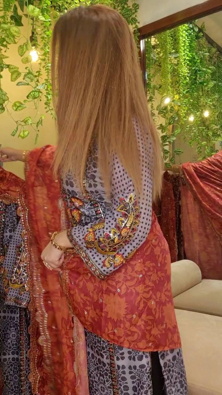 💥orna indian gorget with print and heavy embroidery work