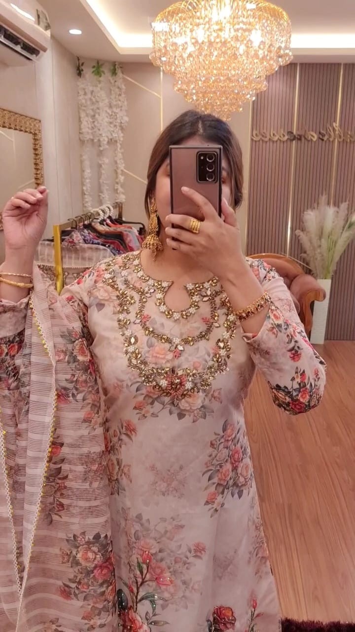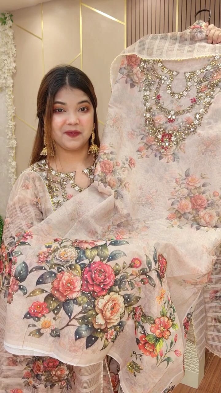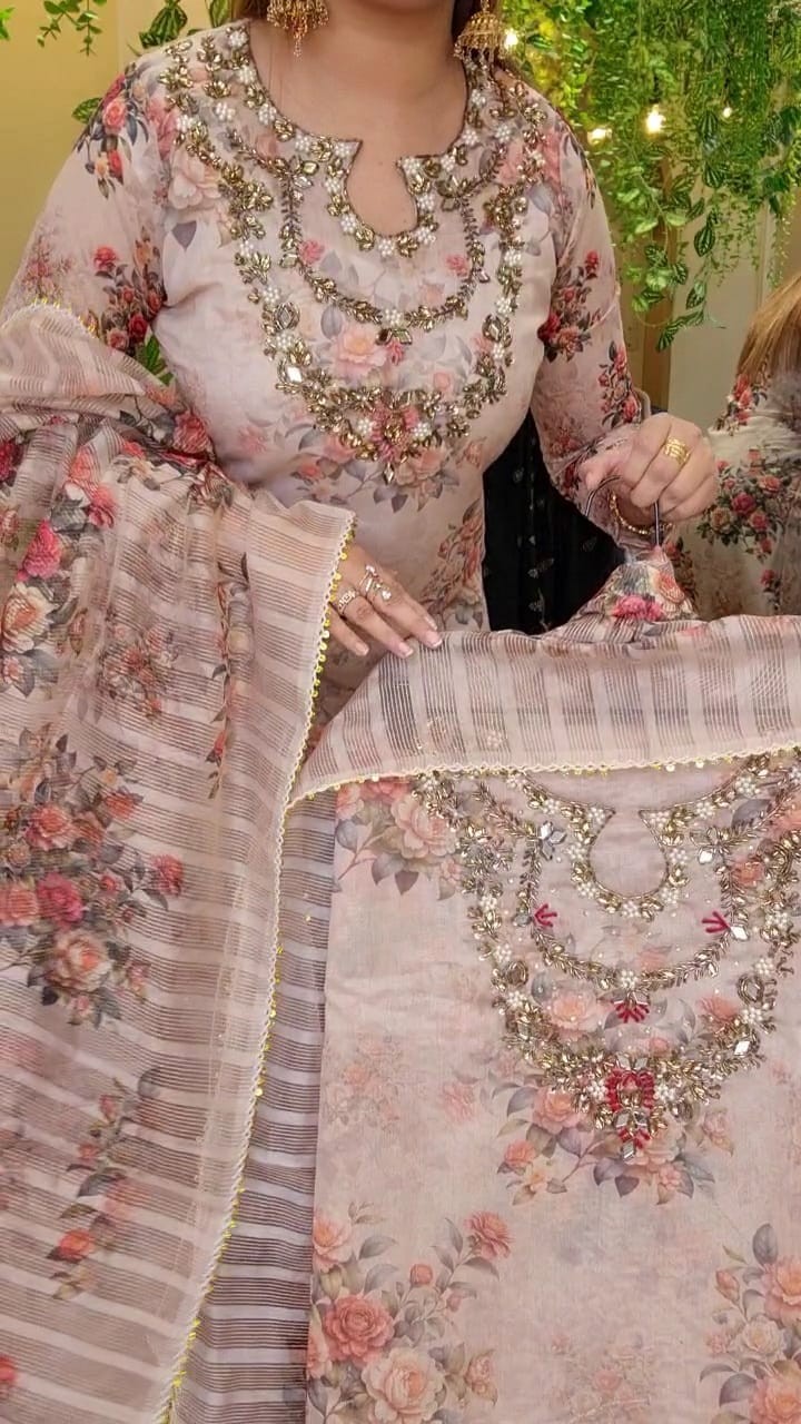 Porshian print with hand karchupi work