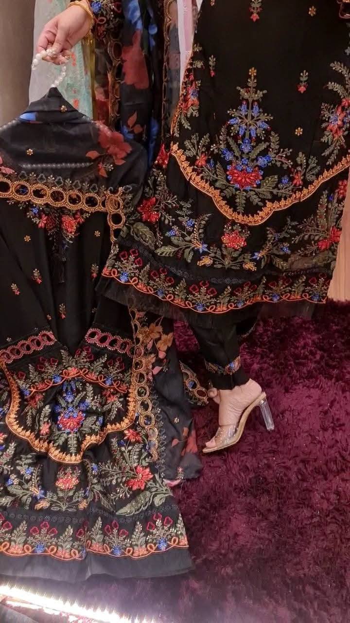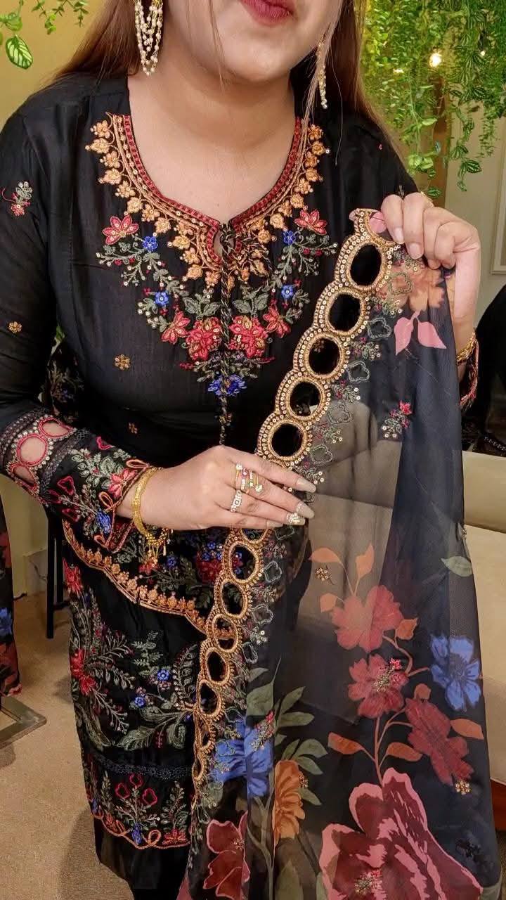 All over heavy embroidery work with lower organza pannel
