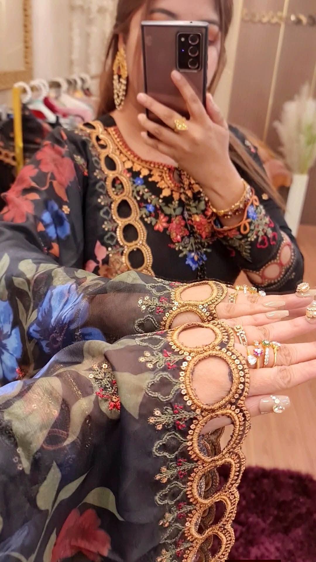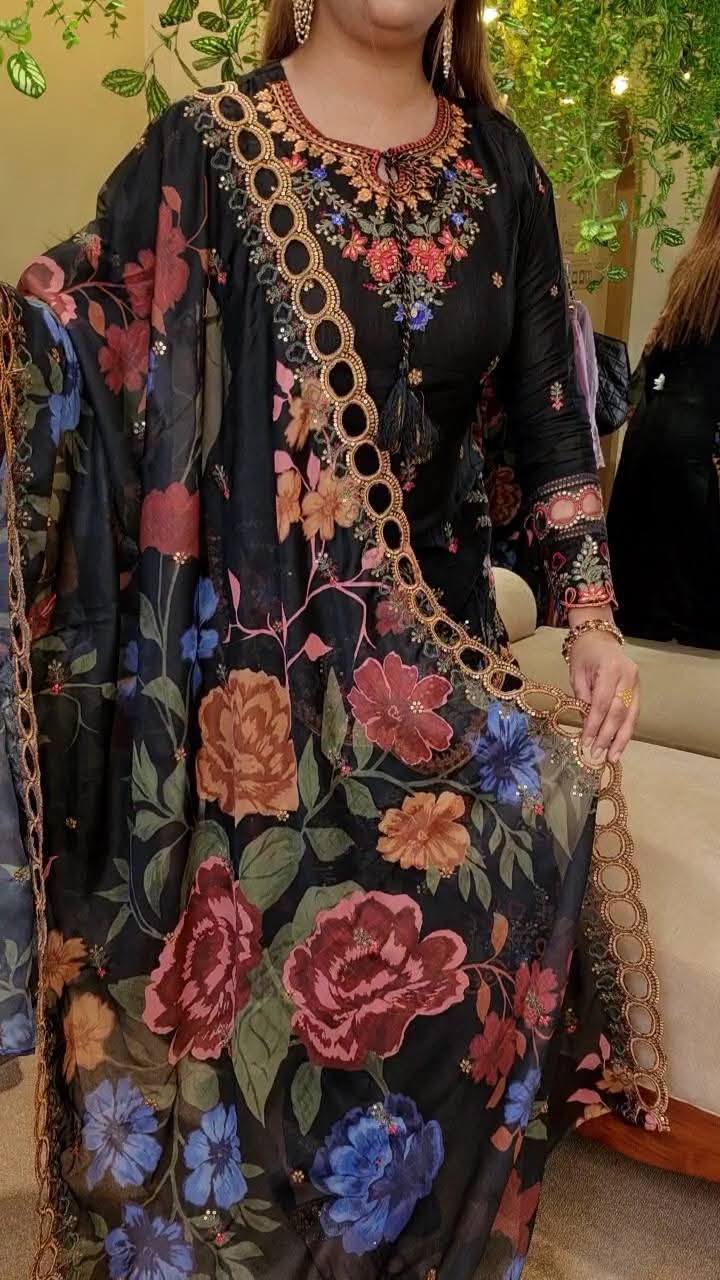 ✅Orna maslin silk with porshian print and ring cut work