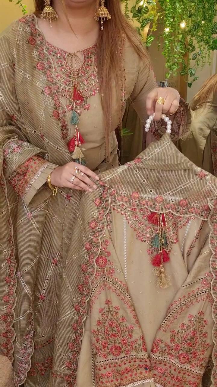 ✅Orna stripe cota fully embroidery work