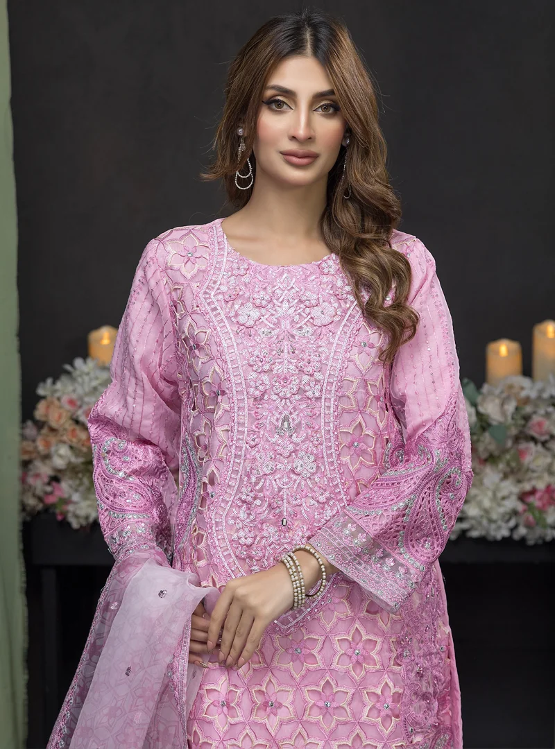 Stitched Embroidered Organza Dress Feiona Zainab Fazlani 05