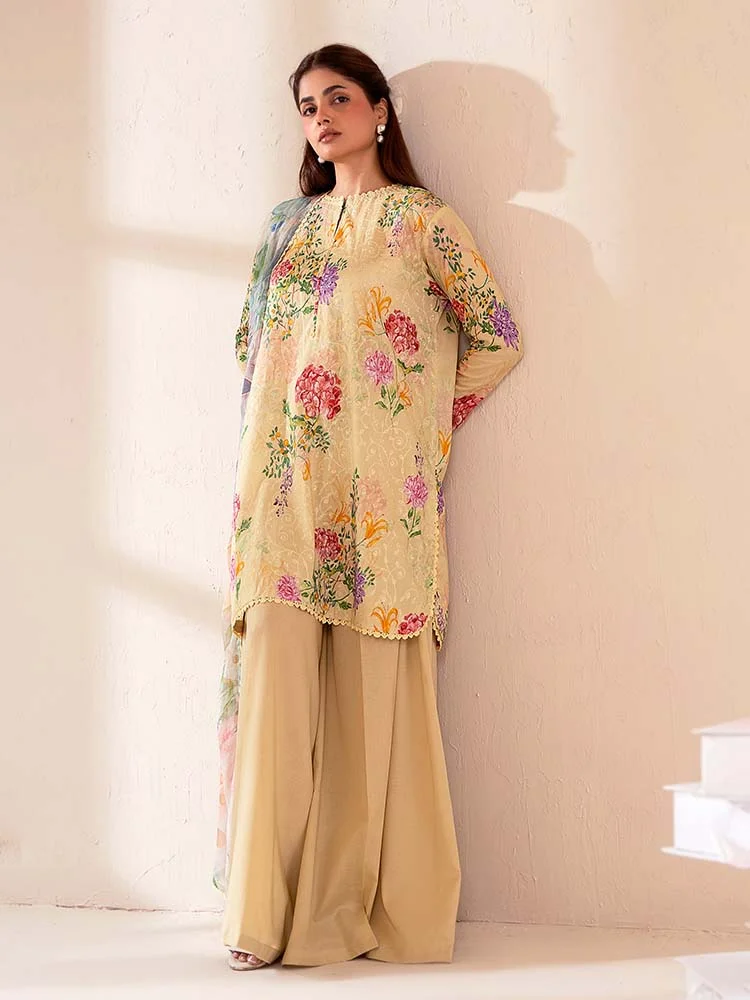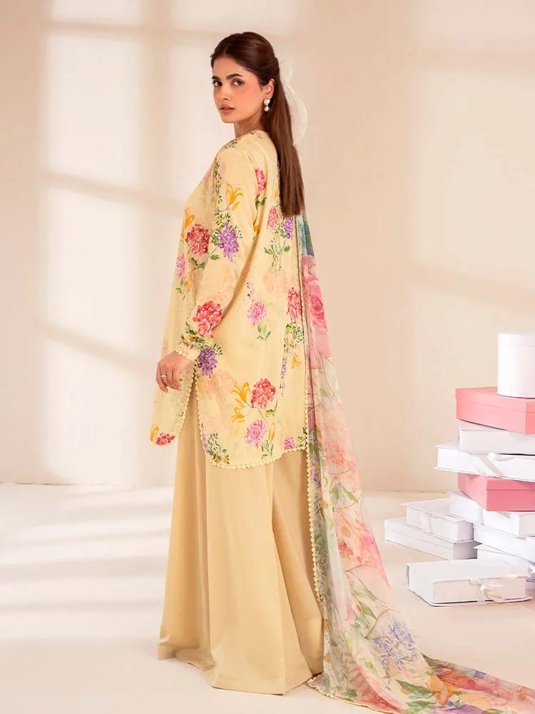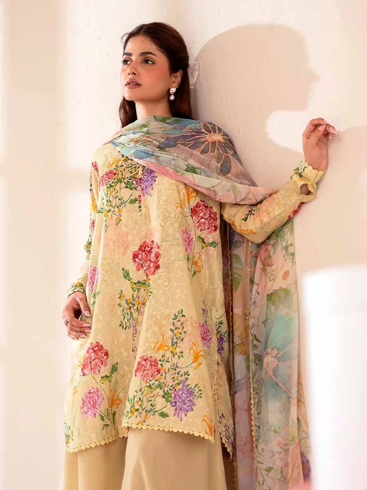 Unstitched 3Pc ChikankariPrinted Lawn Dress Binaas C209
