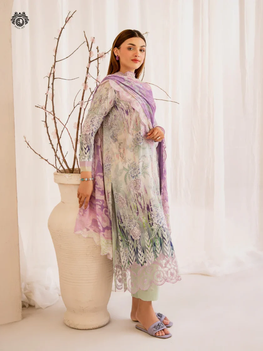 Unstitched 3Pc Embroidered Lawn Dress GullJee Morja 1305